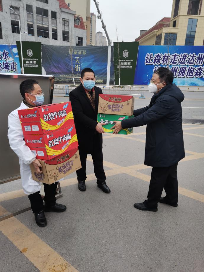 博大资产管理有限公司董事长杨成林为校医院医护人员、留学生等赠送方便面和矿泉水
