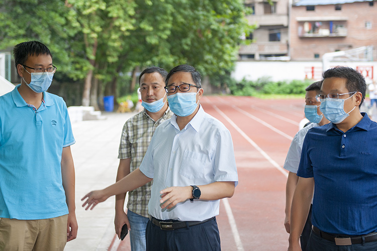 9月5日下午,党委书记王成端带领相关职能部门负责人对莲湖校区西大门、学生宿舍、食堂、校医院、教学楼等进行检查,要求要全面落实疫情防控责任,细化工作措施,做好校园环境卫生消杀,加强校园安全管理,热情有序地做好学生返校工作。要加强食堂安全卫生管理,大力宣传节约光荣、浪费可耻的思想观念,引导青年学生践行光盘行动。要精准掌握教职工健康状况,推动学校各项工作正常开展。要主动关心学生,尤其要重点关注疫情之后学生的心理状况,全面做好学生思想教育引领工作。