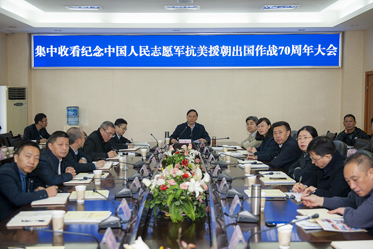 党委理论学习中心组成员在弘德楼三楼会议室进行了集中收看收听。党委书记王成端要求全校上下要深入学习领会习近平总书记重要讲话精神,大力弘扬伟大的抗美援朝精神、爱国主义精神,牢记初心使命,为夺取新时代中国特色社会主义伟大胜利、实现中华民族伟大复兴中国梦,推动构建人类命运共同体作出更大贡献