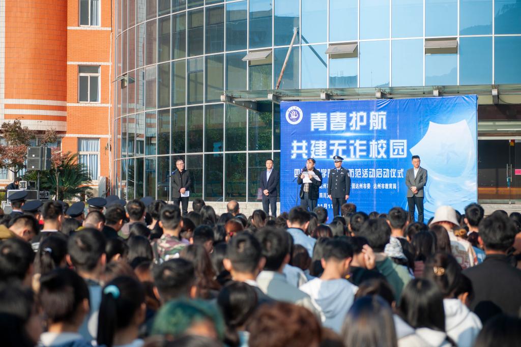 11月11日上午,“青春护航·共建无诈校园”反诈宣传防范活动启动仪式在万象城举行。市公安局党委委员、副局长徐应涛,共青团达州市委副书记曾豪,市教育局正县级干部彭刚出席启动仪式,副校长徐晓宗主持启动仪式。
