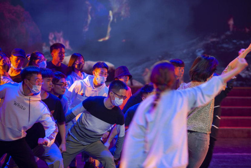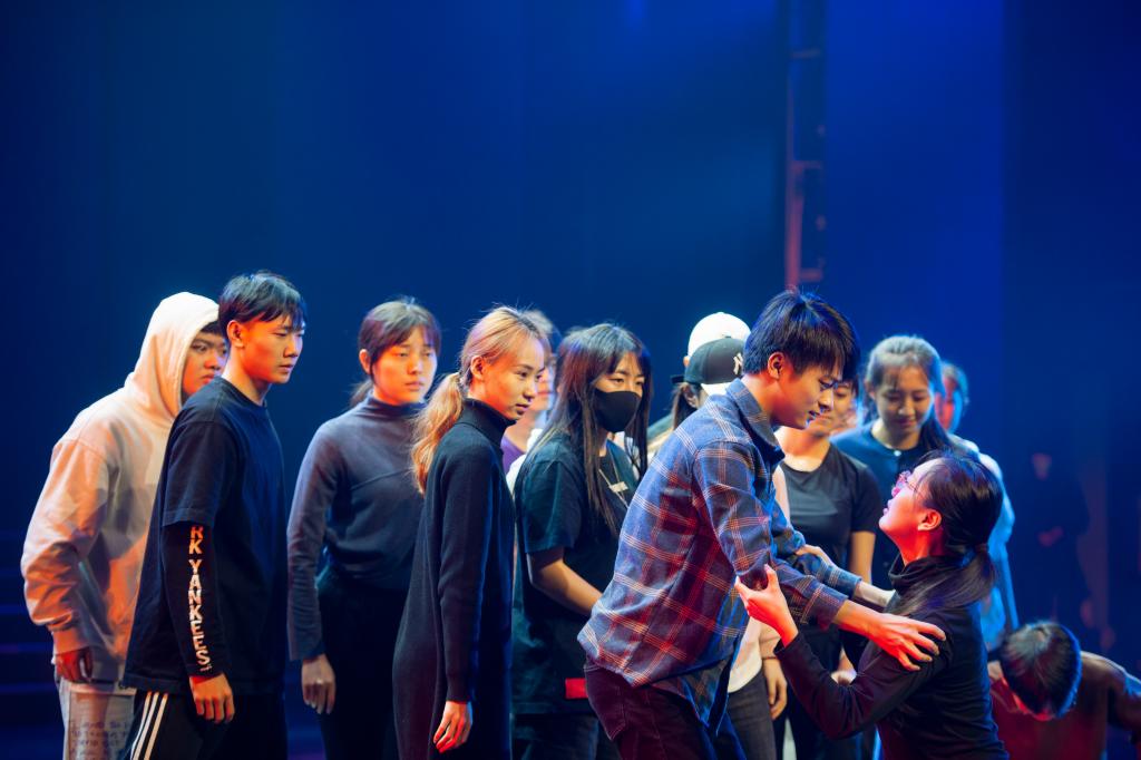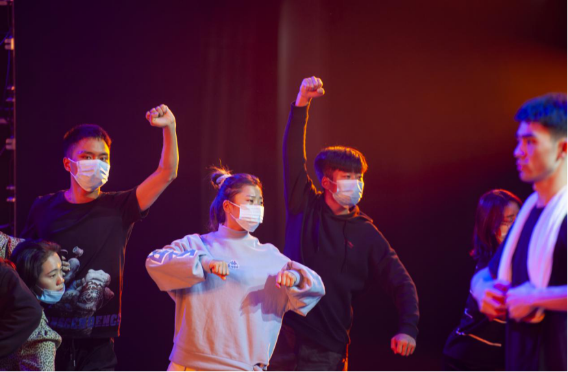 在今年抗击新冠肺炎疫情中,广大青年主动请缨,奋战抗疫一线,书写了许多可歌可泣的英雄故事。参演节目《战“疫”青年》以朗诵形式再现了疫情肆虐时,中国青年的担当和奉献,他们有的是医生、护士,有的是普通工人,有的是平凡的外卖小哥,有的是淳朴的农民……正是因为千千万万奋斗在一线的青年,中国才不会倒下。四川师范大学的演员们每一个表情、每一个动作、每一句诵读都力求完美。