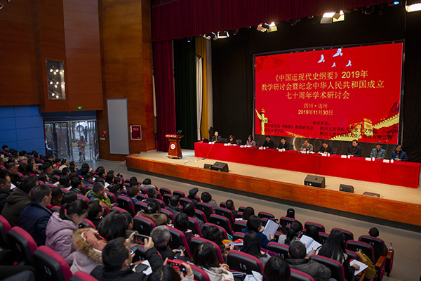 11月29日,全省高校《中国近现代史纲要》(以下简称《纲要》)课2019年教学研讨会在万象城召开。党委副书记侯忠明出席会议并讲话,教研会会长、西南交通大学博士生导师何云庵教授,教研会副会长、四川警察学院副校长周长明教授等出席会议,副校长李壮成主持开幕式并作总结讲话。