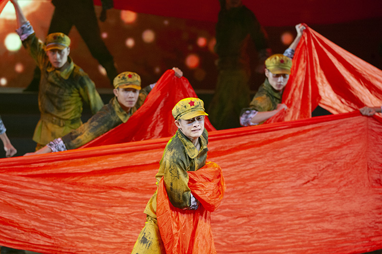 内江师范学院舞蹈《忆•红》运用红绸等元素,将艺术和情感有效结合起来,向观众展示了红色文化对大学生培养爱国主义情怀的重要意义,展现了青年学生对红色文化的喜爱之情,对红军精神的传承和矢志弘扬革命精神的意志品格,让青年一代深刻明白理解到今天幸福生活是革命先辈抛头颅、洒热血换来的,要传承先烈品质,砥砺奋进。