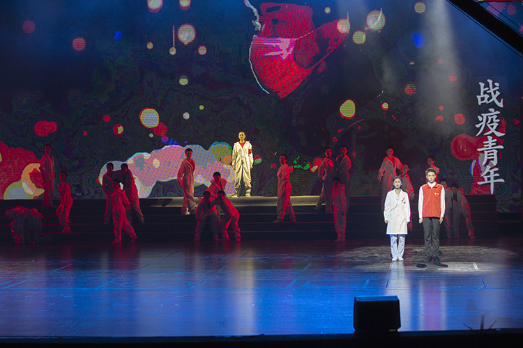 在今年抗击疫情中,无数青年奋战抗疫一线,书写了许多感天动地的故事。第四篇章声乐《中国脊梁》《高铁开到尔玛人家》、朗诵《战“疫”青年》、舞蹈《走祥云》《“痕”美》《太阳鼓》《阳光下》等优秀节目以不同艺术形式、不同题材展现了当代青年奉献新时代,众志成城筑梦新时代,团结奋进新时代的新风尚。