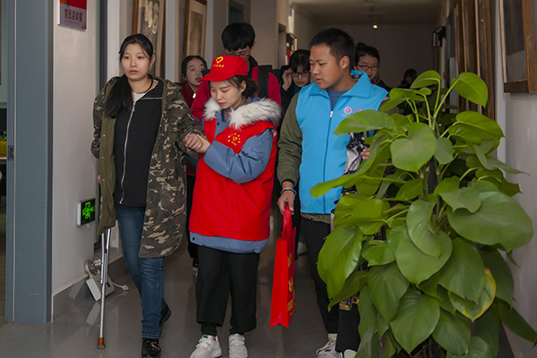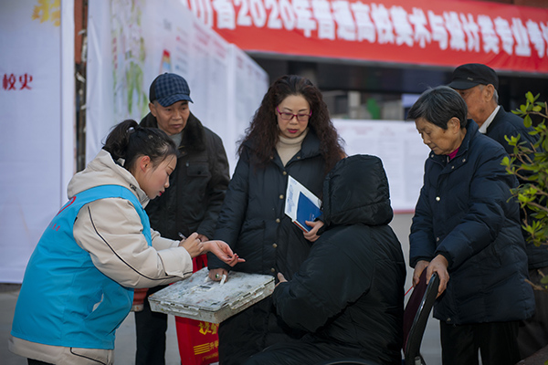当天下午,离考试正式开始还有20分钟左右,志愿者们便纷纷等候在考场入口,他们见到行动不便的考生李宇佳、毛芳、李杜香岚和眼角还蒙着纱布的刘园琪时,便主动迎上前去,为他们送上暖心的志愿服务。志愿者们经过商议两两一组有针对性的对“困难”考生进行“一对一”帮扶,他们1人搀扶考生,1人帮助其拿画材,带考生顺利进入考场后,还帮他们支画架、打水……考生李杜香岚由于腿脚受伤不能坐小板凳,志愿者在监考教师的允许下,还为其准备了特别的板凳使之能方便作画。在考试即将结束时,志愿者们便早早等候在考场外,考试结束后又及时主动地帮助他们离开考场,有的还向考生家长留下了联系电话,表示如有需要也将会及时伸出援助之手。
