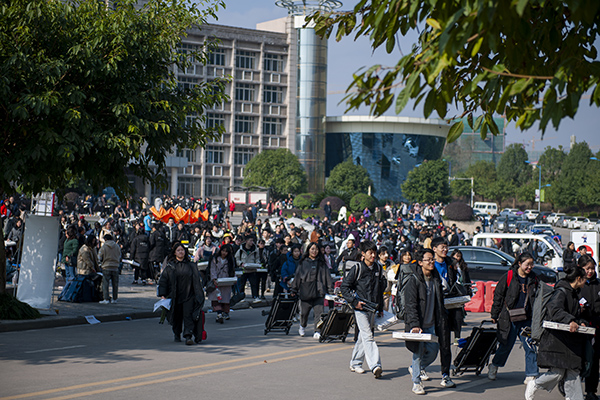 12月7日至8日,3680名考生在万象城参加四川省2020年普通高等学校美术与设计类专业考试。在紧张的考试期间,有一群志愿者活跃在考场周围,他们为“困难”考生或提供咨询服务,或搀扶他们上下楼,或背他们进出考场,或为他们背画架……一幅幅温暖的画面感动了受助考生,也感动了场外的考生家长,他们以热情周到、温暖贴心的服务生动地展示了文理志愿者的良好形象。