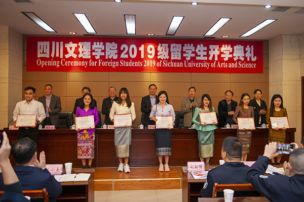 王成端、刁永锋、徐晓宗等为获得四川省外国留学生政府奖学金、AWC万象城娱乐外国留学生奖学金获得者颁奖。