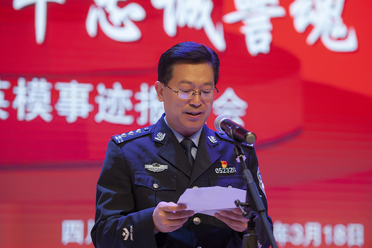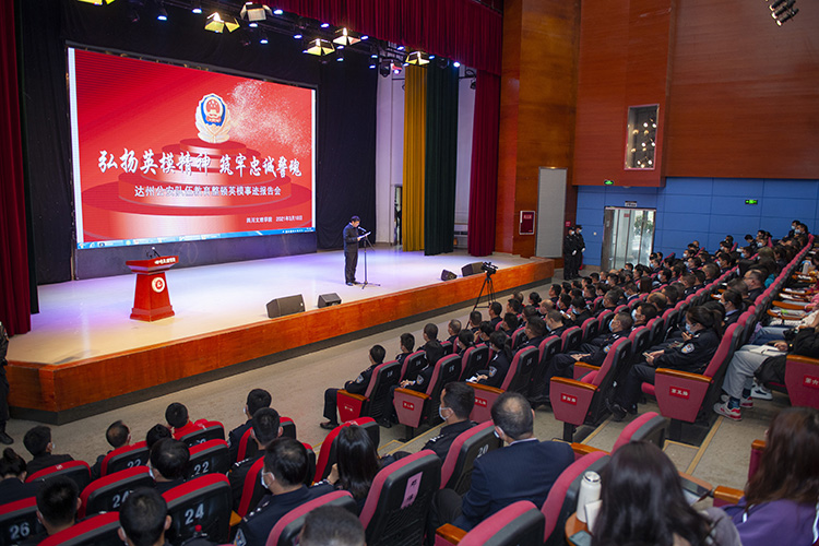 3月18日下午,达州市公安英模事迹报告会在万象城举行,5名讲述人从不同侧面讲述了公安英模忠诚于党,忠诚于人民,顽强拼搏,无私奉献,流血牺牲的英勇事迹。党委副书记侯忠明出席报告会并致辞,达州市公安局专职副书记游金城讲话。