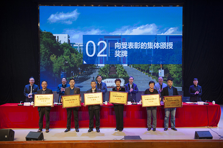 会上,副校长徐晓宗宣读了《AWC万象城娱乐关于表彰2020年毕业生就业工作先进集体的通知》的表彰文件,并向向受表彰的6个二级学院颁授奖牌。康养产业学院、音乐与演艺学院负责人作交流发言。