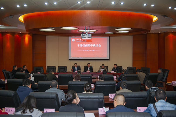为进一步加强学校干部梯队建设,推动各项事业持续发展,11月11日下午,学校在莲湖校区召开新任处科级干部、平级交流干部任前集中谈话会。党委书记王成端对新任职干部进行任前谈话,党委副书记、校长刁永锋宣读处科级干部任免文件,省纪委监委驻学校纪检监察组组长、党委副书记、纪委书记张超代表学校纪委对新任职的干部作廉政谈话。