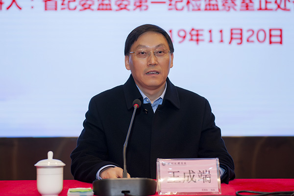 为扎实推进“不忘初心、牢记使命”主题教育,根据四川省纪委监委统一安排部署,11月20日,省纪委监委第一纪检监察室正处长级副主任周智勇同志来万象城作《坚持全面从严治党,营造风清气正的校园环境》宣讲,党委书记王成端主持宣讲会并讲话。