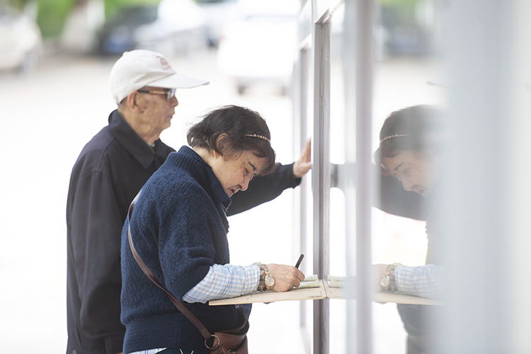虽说他们年纪已经很大了,但在抄写党史、学习党史精神上的热情很高。李爷爷手指着宣传橱窗里的字,句句吐字清晰,铿锵有力,张奶奶也是一点儿也不马虎,紧紧靠着橱窗,拿着手中没有笔盖的签字笔,两眼炯炯有神地看着记录,书写着党史精神,也书写着自己的梦想。