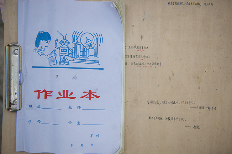 当被请求看看奶奶抄的笔记时,李爷爷欣然答应了。摘抄本是一个旧本子,本子四个角有很多都卷了,下面垫了一块木板,木板上也写有一些记录,一个夹子把本子夹在木板上。一个本子几乎被写得满满当当,密密麻麻的字填满了一页又一页。看着一页又一页的字迹,不敢相信这是一位82岁老人靠着橱窗写出来的。有时候因为抄写党史精神,两位老人,一站就是一上午,早上吃了早饭就来,到了吃午饭的时间再回去,即使是天气炎热,也要来。李爷爷说:“太阳大也莫得啥子!今天抄了已经是第三天了,这一栏要明天才抄得完,今天还抄不完,我们抄得慢。”当被请求要拍一下摘抄本时,李爷爷说:“她写的字不好认得!”李奶奶笑着说道:“不是不好认,是我赶时间写得快,回去我们还要把这个本子上的内容工工整整地重新抄一遍!”