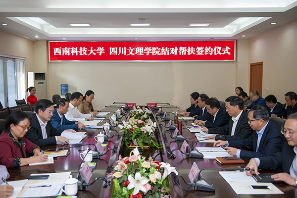 为贯彻落实全省高校定点帮扶工作推进会议精神和省教育厅相关文件精神,10月17日,学校与西南科技大学签署结对帮扶协议。西南科技大学党委书记陈永灿、学校党委书记王成端出席并讲话,党委副书记、校长刁永锋主持签约仪式。