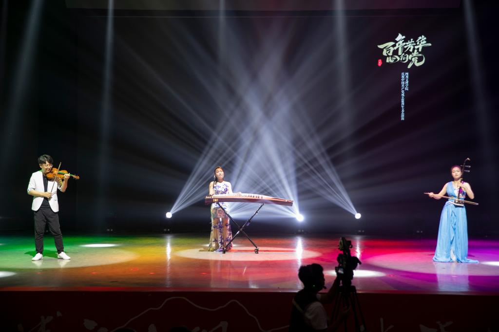 在中国共产党成立100周年的喜庆日子,7月1日,学校在音乐演播大厅隆重举行“百年芳华·心向党”文艺演出。