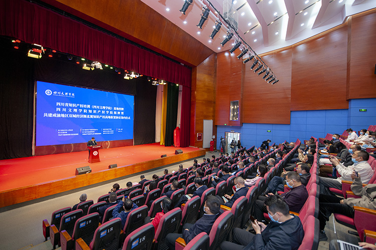 王成端向莅临大会的嘉宾表示热烈欢迎。他说,深入实施国家知识产权战略,加快建设知识产权强国,是我国的一项重大战略部署。知识产权人才是知识产权强国建设的第一资源。学校主动对接国家知识产权战略和地方知识产权保护事业对人才的迫切需求,不断加强学科专业建设,积极构建人才培养体系,整合办学资源,成立知识产权学院,并获批四川省知识产权培训基地。市委、市政府将建设并运营“四川省知识产权培训基地”写入“十四五”知识产权保护和运用发展规划。学校将以此为契机,认真落实基地主要职能,健全运行机制,加强知识产权人才培养并形成一批具有较高水平知识产权应用研究成果。