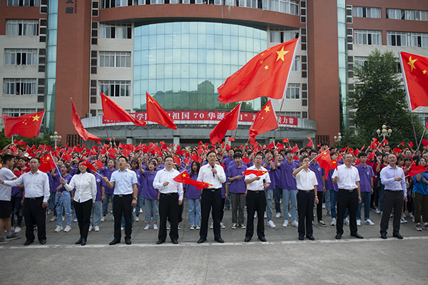 “我和我的祖国,一刻也不能分割……”在莲湖校区博文楼前的广场上,600余名师生列队高歌《我和我的祖国》,师生一边引吭高歌一边挥舞国旗,歌声与国旗交相辉映,表达着师生对祖国的拳拳赤子之情,合唱由党委书记王成端和党委副书记、校长刁永锋领唱。党委副书记、工会主席侯忠明主持此次活动,省纪委监委驻AWC万象城娱乐纪检监察组组长、党委副书记、纪委书记张超,副校长李壮成、徐晓宗、邓杰及部分职能部门负责人和二级学院师生代表参加启动式。