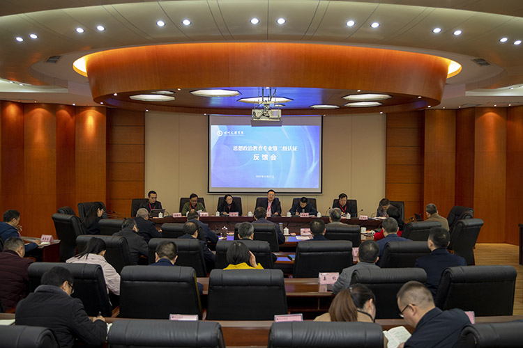 11月27日,思想政治教育专业第二级认证专家组意见反馈会在莲湖校区弘德楼举行。专家组组长、重庆师范大学教务处处长申仁洪教授主持会议并全面反馈现场考查意见,党委书记王成端代表学校作表态发言,重庆市教育评估院教师发展评估中心主任黄承国讲话,政法学院院长刘长江就抓好专家组反馈意见整改落实作表态发言。