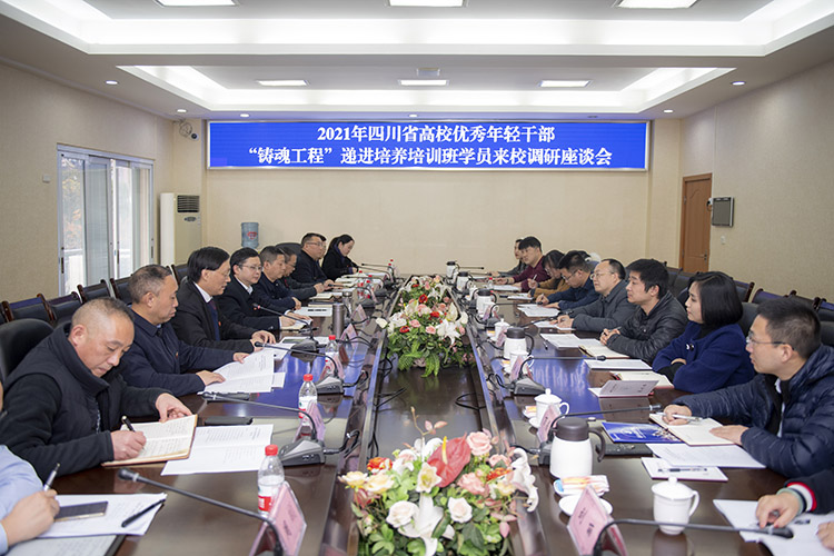 12月9日,四川省高校优秀年轻干部铸魂工程递进培养培训班学员来万象城开展调研。党委书记王成端出席会议并致辞,党委副书记侯忠明主持调研座谈会。