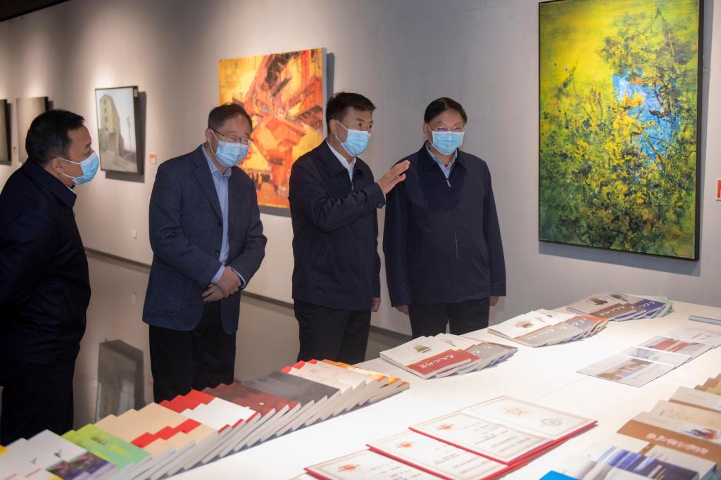 于立军详细了解学校的办学思路、办学历程和办学成果,参观了“巴山画家群”的艺术作品,询问了书法艺术专业教学情况,认真听取学校党委互联网思想政治工作部的育人情况介绍,对学校的改革发展举措和办学成绩表示肯定,对学校师生创作的艺术作品给予赞许。