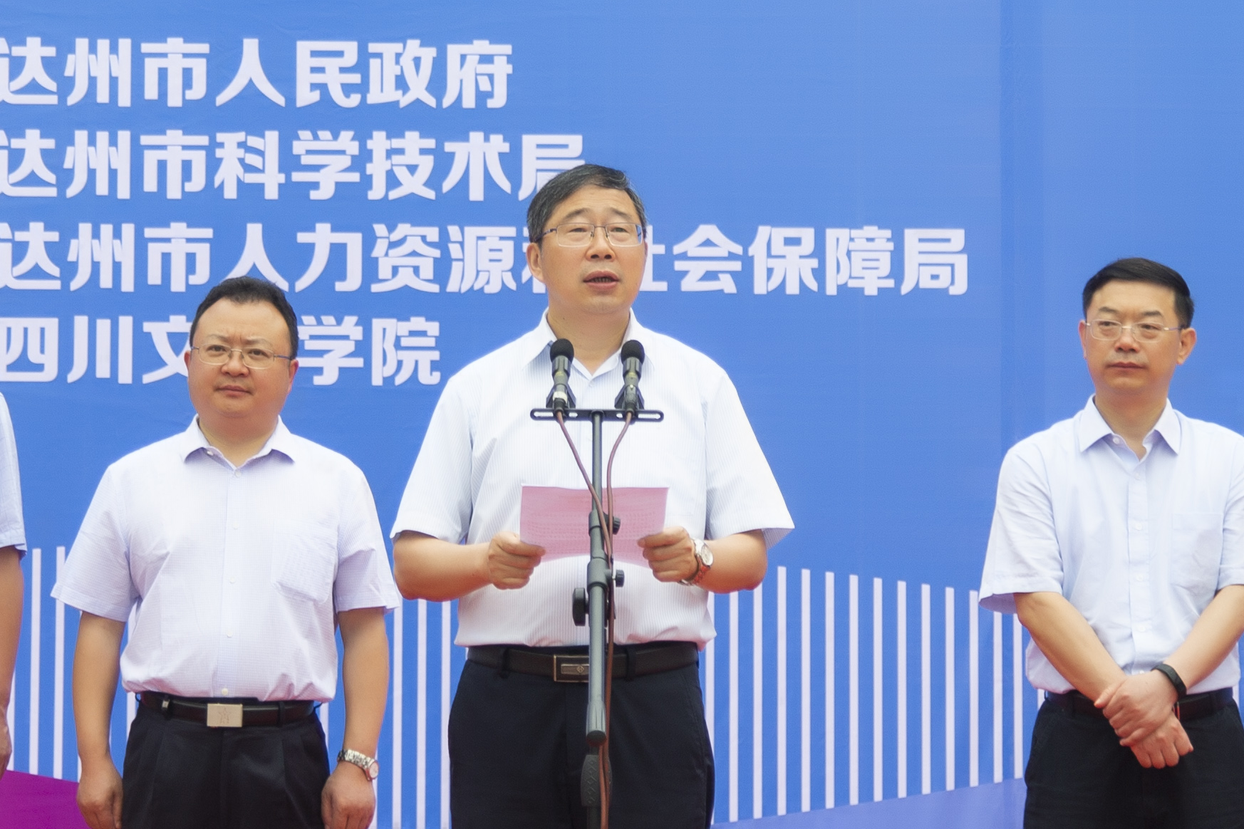 达州市科技局负责人宣读了2019年“全国大众创业万众创新活动周”达州活动方案。万象城创新创业学院负责人作为创新创业服务平台代表发言。