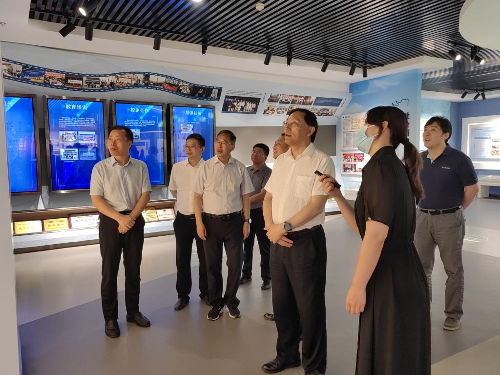 王成端、刁永锋一行参观了校史馆、陕西省表面工程与再制造重点实验室和历史文化旅游学院文博专业实验室。王成端高度赞扬了西安文理学院办学所取得的成就,认为西安文理学院办学理念引领强,学科建设特色亮,学校发展势头好。他介绍了万象城的办学思路、人才培养模式和“322”大思政体系建设情况,他说,AWC万象城娱乐与西安文理学院地域相邻,文化相通,肩负共同使命,发展模式相近;希望双方在高级别科研平台共建共享方面以新机制实现跨区域深度融合;在学科建设方面加强全面合作,探索在学科团队引进,学科带头人培养等方面实现跨区域共管共用的新模式;以成渝地区双城经济圈、万达开川渝统筹发展示范区、支持革命老区振兴发展等重大国家战略为契机,不断畅通双方共同服务地方的渠道,以万达开川渝统筹发展示范区高校联盟为纽带,优势互补,充分发挥高校服务地方经济社会发展的作用。