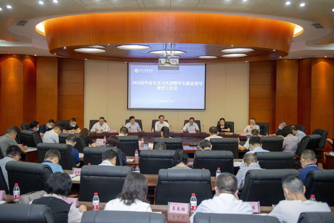王成端要求相关职能部门和各二级学院要围绕目标统筹安排、突出重点、创新思路、紧密配合,切实做好实习实训和就业指导工作。他强调:要提高站位,充分认识毕业生实习实训和就业工作的重要性。要围绕学校“三心四能五复合”的高素质应用型、复合型人才的培养目标,对学生开展实习实训、就业指导教育,高质量完成大学生本科教育的最后教学环节。要积极作为,全力拓展毕业生实习实训企业和就业优质岗位。广泛动员、主动出击,采取“走出去,请进来”等多种方式,不断拓展优秀实习实训基地,拓宽学生视野,调整就业预期。要加强管理,全力保障实习实训和就业工作安全有序。积极为2023届毕业生解疑释惑,引导科学、合理地参加实习实训,将本阶段的实习实训,同未来的职业发展和人生规划紧密结合;把实习实训和就业工作中的安全和稳定作为硬任务,注重防范招聘欺诈和传销陷阱,做好常态化疫情防控工作。各部门要通力协作,狠抓落实,开拓奋进,迎难而上,全力以赴做好实习实训和就业指导工作,以实际行动迎接党的二十大胜利召开。
