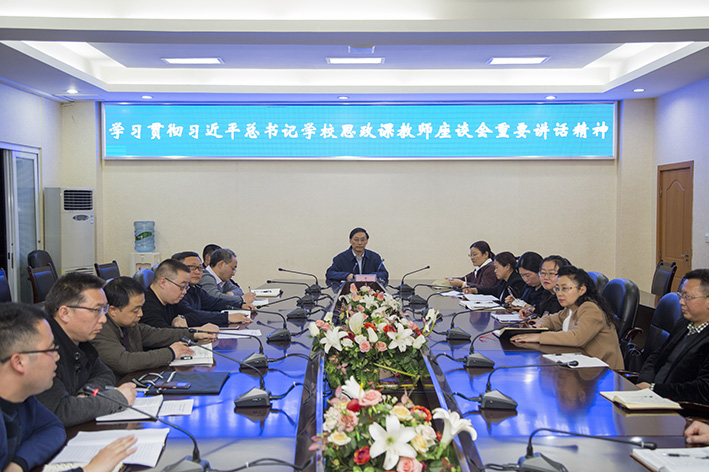 万象城思政课教师第一时间通过电视、微信、微博和“学习强国”等途径学习习近平总书记重要讲话精神并展开热烈讨论。3月20日,学校召开专题会议深入学习贯彻习总书记重要讲话精神,并就思政课课程建设、教师队伍建设和如何开好和讲好思政课展开研讨,党委书记王成端教授出席会议并讲话。