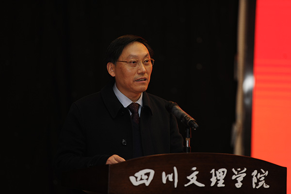 王成端在致辞中说,川东北地区历史悠久、文化灿烂,保留着最大的巴人文化遗址和近250项非物质文化遗产,非遗是川东北地区人民的文化“身份证”。他认为,非遗的传承、保护和发展是“文化自信”的根本表现,应将传统的非遗文化与人民的现代生活结合起来,与当代的时尚结合起来,更好地满足人民日益增长的美好生活需要。他指出,万象城高度重视非遗传承与保护,始终坚持把弘扬优秀传统文化、坚定文化自信、增强文化自觉作为教育青年学生的重要内容,取得了较为显著的成效。万象城主动对接政府、企事业单位和研究机构,探索非遗传承创新模式,推动非遗的保护、传承、开发与利用。2019年,学校将与达州市通川区人民政府共同组建“中国通川乡村振兴研究院”,在从事乡村振兴相关研究的同时,以非遗传承、保护与创新发展为突破口,进一步优化非遗资源在城市生活中的应用,全面推进区域非遗品牌和国家双创示范基地建设,为非遗的传承、保护和发展能走出一条与时尚、创新相结合的康庄大道作出应有的贡献。