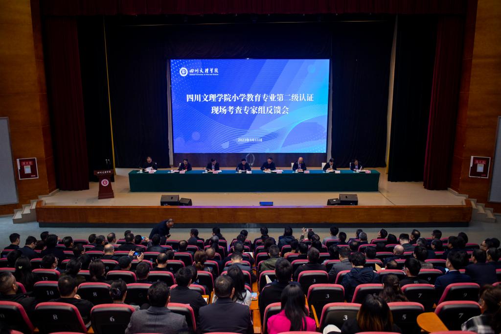 3月11日,小学教育专业二级认证专家组现场考查意见反馈会在学校艺术传媒大楼多功能厅召开。专家组组长、安徽省教育评估中心主任汪开寿主持会议并代表专家组反馈考查意见,四川省教育评估院院长陈立兵出席并讲话,党委书记王成端和教师教育学院负责人分别作整改表态发言。