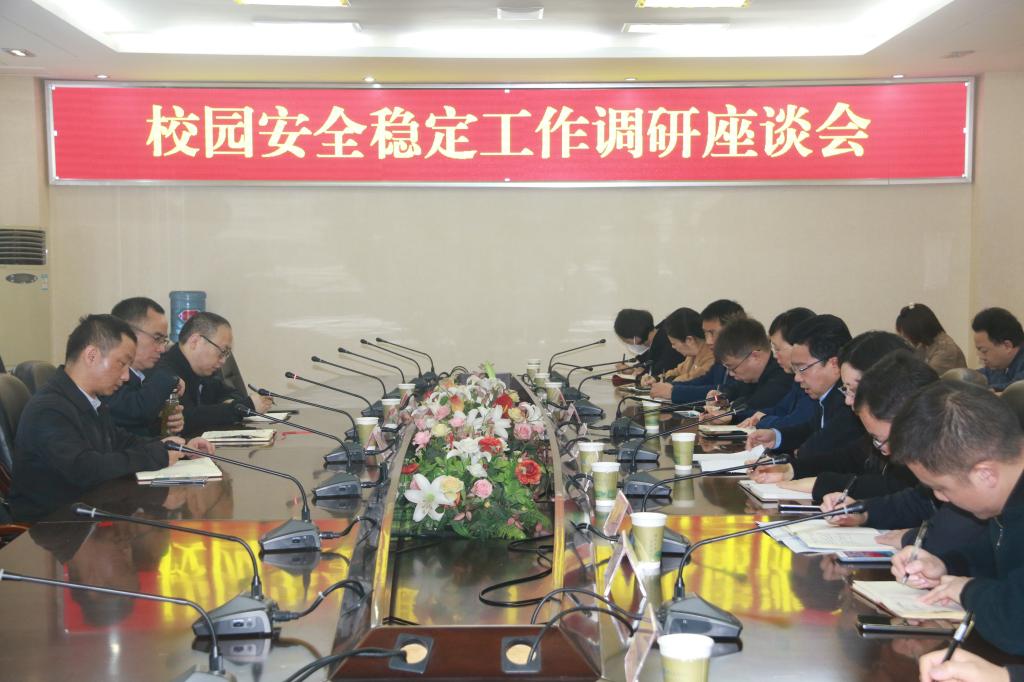 3月11日,省教育评估院院长、省教育厅包片指导第十组陈立兵来校调研安全稳定工作。副校长邓杰主持调研座谈会,学校党委宣传部、党委互联网思想政治工作部、武装保卫部(处)、学生工作部(处)、教务处、国有资产管理处、基建处、后勤服务处、国际交流合作处等部门负责人参加座谈会。