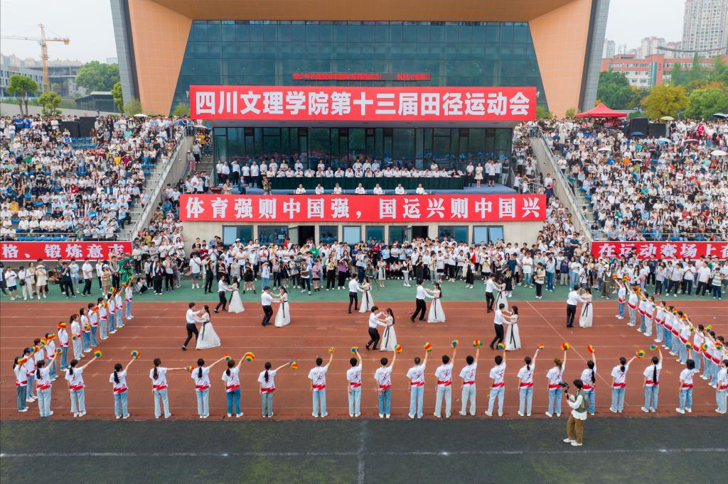在整齐的方队展示之后,各学院的表演队也纷纷开始了精彩的表演,一首首欢快的歌曲将我们迅速从刚才观看方队时的震撼与激动转变为活力四射的状态,在这青春洋溢的氛围之下,无论是文理学院的学子、老师还是其他的观赛人员都不禁融入这欢愉的时光。