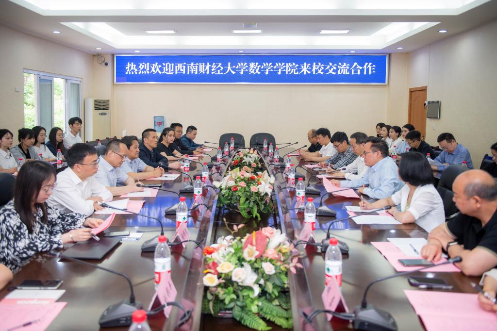 在座谈会召开前,党委书记黄涛会见了西南财经大学数学学院客人,他希望数学学院要珍惜机会,虚心请教,对标学科建设和硕士点建设要求,借助西南财经大学的学科实力,开展教学研究和科研攻关,努力产出高水平成果,并将成果转化为促进地方经济发展的新动力。