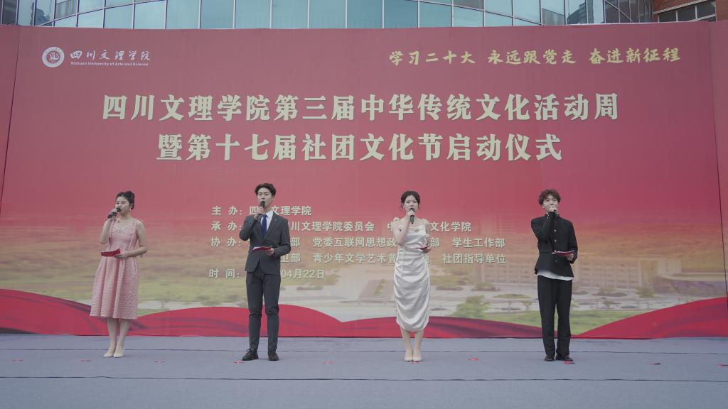为深入学习贯彻党的二十大精神,发挥学生社团育人功能,传承弘扬中华优秀传统文化,引导青年学生全面发展,4月23日,学校在莲湖校区音乐广场举行第三届中华传统文化活动周暨第十七届社团文化节启动仪式。副校长徐晓宗讲话并宣布活动正式启动,校团委书记成华军主持启动仪式。