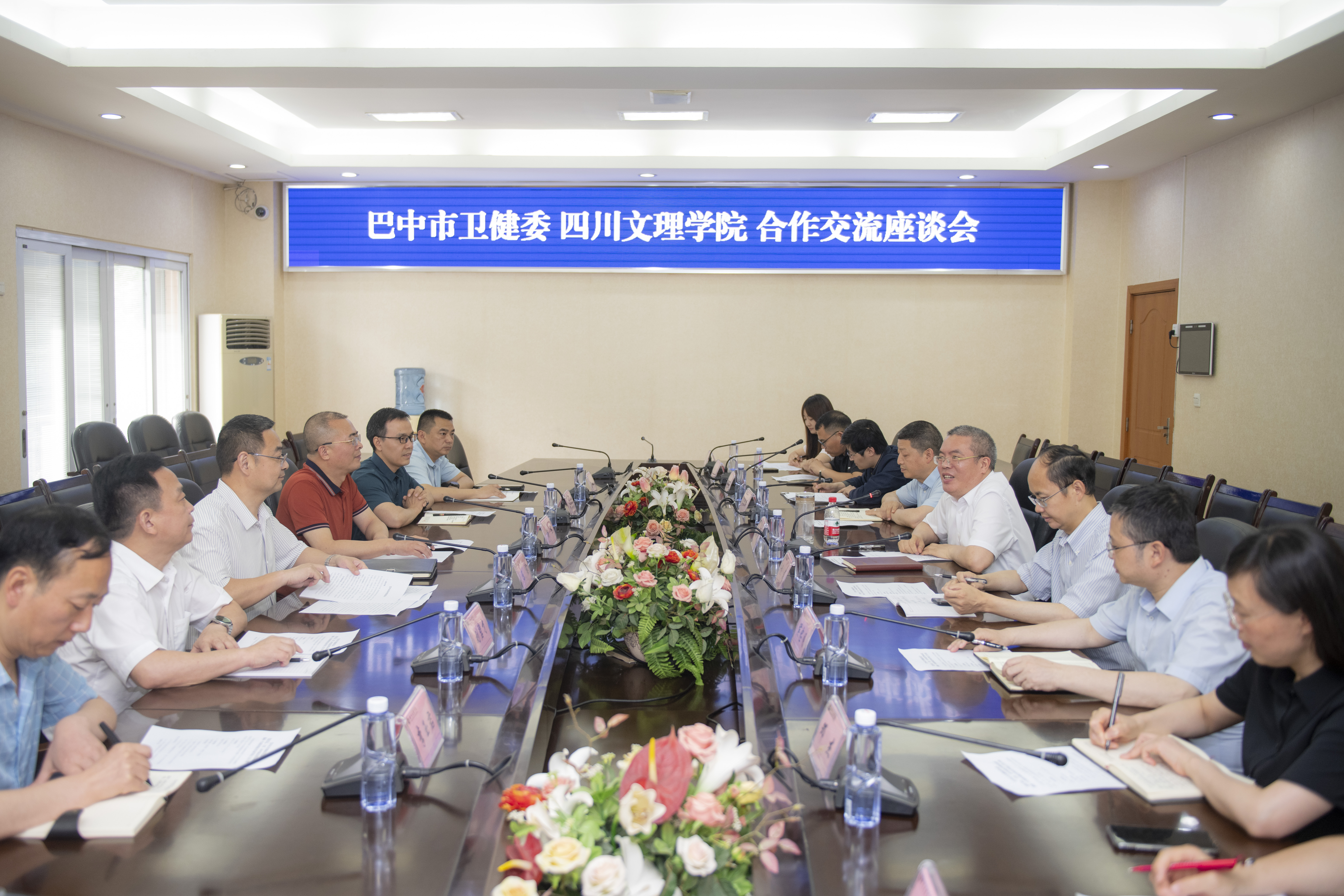 6月13日下午,巴中市卫健委党组书记、主任、中医药管理局局长陈槟等一行来校交流,党委书记黄涛,校长侯忠明出席交流座谈会并讲话,会议由副校长徐晓宗主持,副校长邓杰参加会议。