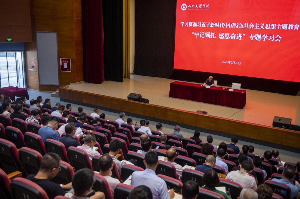 为认真贯彻落实党中央和省委深入开展学习贯彻习近平新时代中国特色社会主义思想主题教育部署要求,推动主题教育往深里走、往心里走、往实里走。6月26日,学校在艺术传媒大楼多功能厅举办主题教育学习研讨专题辅导讲座。四川革命老区发展研究中心主任陈岗教授作专题辅导,党委书记黄涛主持讲座。