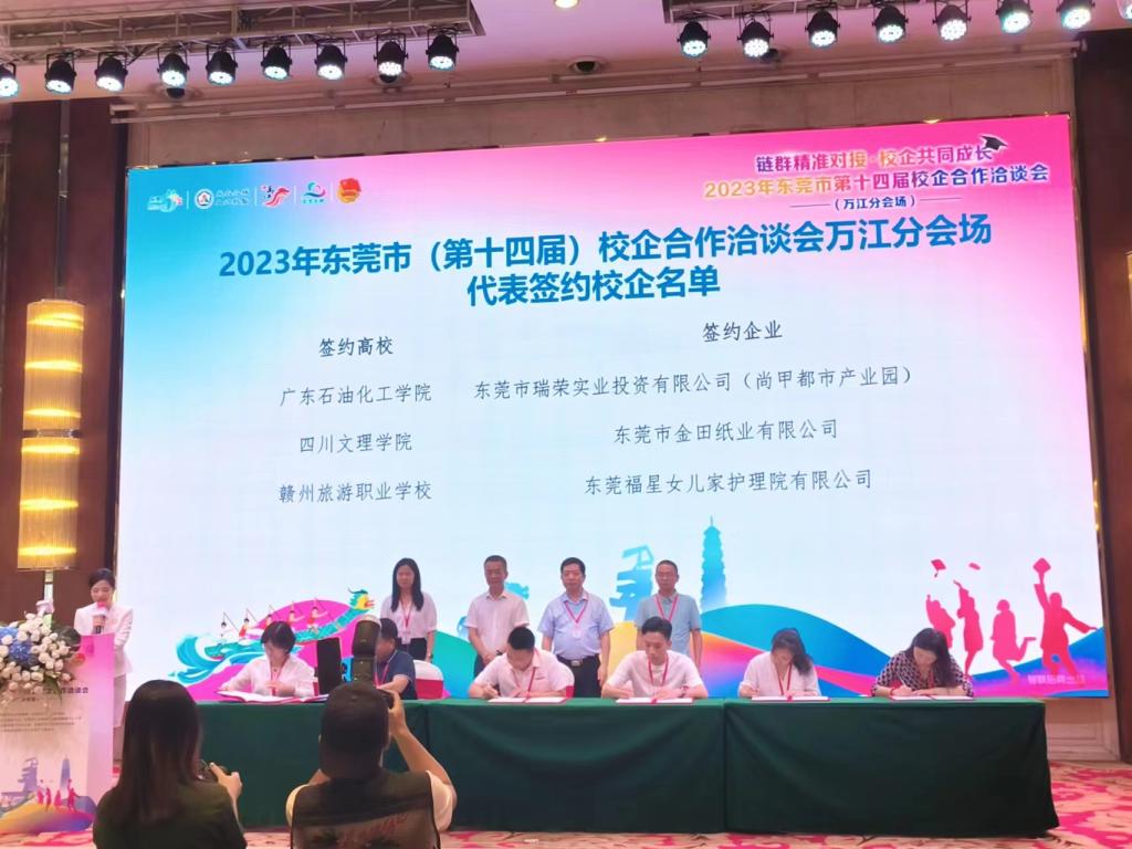 经过座谈交流,与东莞市中创智邦产业园运营有限公司、东莞市超业精密设备有限公司、广东顺联动漫科技有限公司等6家企业签订了毕业生就业意向性合作协议,与兆纪光电科技有限公司达成产学研进一步合作的共识。