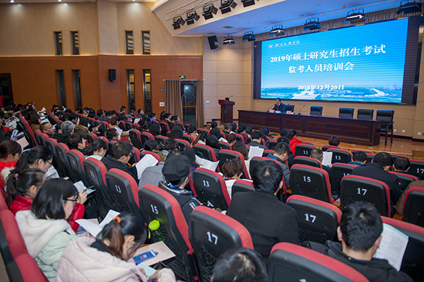 为确保实现“平安研考”“规范研考”目标,提高监考服务质量,学校于12月20日晚在学术报告厅A厅召开2019年全国研究生招生考试监考人员培训会。校长刁永锋、副校长李壮成、邓杰出席会议,研招考试纪检办公室、考务办公室工作人员及全体监考教师参加培训。副校长李壮成主持培训会。