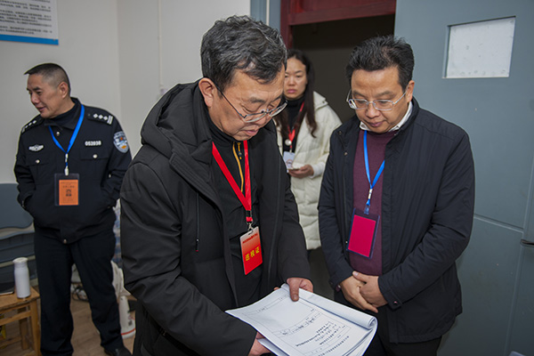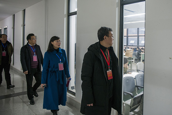 曹国栋一行人听取万象城关于本次考试的组织准备情况汇报,先后巡视试卷保密室、考务办公室、纪检办公室、考试指挥中心,查看各考场的考试环境和考场秩序,仔细询问了考试管理、安全保障等工作细节,并对工作在考试管理第一线的工作人员致以亲切问候。