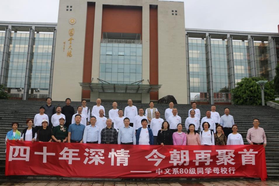 9月23日,万象城中文系80级校友,带着对母校的感恩之情,在毕业40周年回校温情相聚,共忆青春往昔,共话母校发展。学校校长、校友总会会长侯忠明、副校长邓杰参加返校活动,校友工作办公室主任杨成林、文学与传播学院党委书记冉林、院长曾宪文接待陪同。