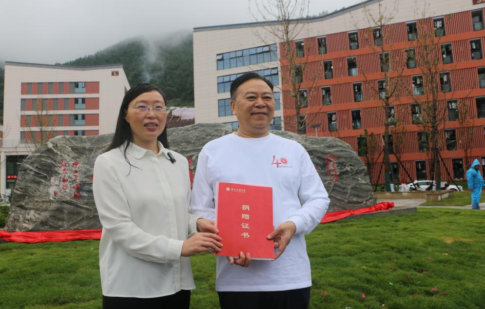 仪式上,邓杰代表学校为捐赠校友代表余多国颁发了捐赠证书。杨成林与校友代表胡昌华共同为捐赠的泰山石揭下幕布。