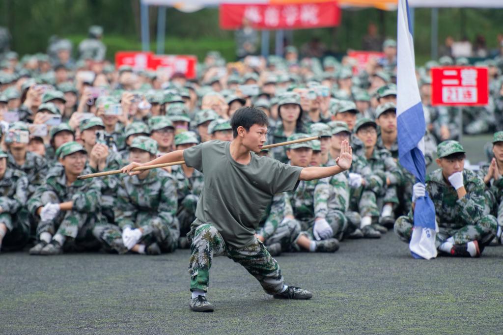 雄心因练立显,壮志俞砺沸腾。优秀教官代表王高策总结了12天的军事训练成果,在军训过程中教官们教的认真,同学们学的到位。在短短的时间里,同学们克服困难,顽强拼搏,弘扬了不怕困难、超越自我的精神;展示了坚韧不拔的意志;也初步养成了良好的行为习惯。激励同学们将军训所学的内容内化于心,外化于行,不忘初心,做一个有理想、有文化、有品德的有志青年。