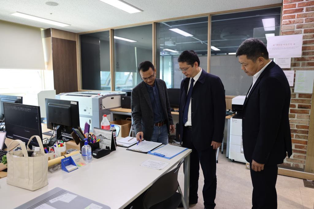 韩国国立江源大学校长金宪镕热情接待了侯忠明校长一行,详细介绍了其学校的基本情况、国际教育、学科专业建设等情况,并与万象城签署了合作协议。他希望在已有的合作基础上,两校的合作能够更加深入,开展优势学科的合作办学。侯忠明一行重点与国立江源大学文化艺术工学院、建筑学院院长金世镒,国际交流处处长金景泰进行了交流,就人才培养、教育教学特色、学科专业建设、办学场地、艺术学科工作室、土木工程中心进行了实地调研,参观了国立江源大学未来图书馆等校园建设项目。