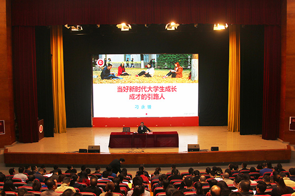 刁永锋校长以“当好新时代大学生成长成才的引路人”为题,结合大学的根本任务和使命,阐释了什么是大学、大学的功能、大学的理念,介绍了大学的类型,分析了学生上大学的目的,提出了人才培养的追求和目标。他说,辅导员与学生接触最多,交流最多,对学生的影响也最大,伴随着学生的生活和成长。他要求全体辅导员深刻理解自己的工作使命、价值和意义,以学生为中心,把握安全、发展两个学生工作基点,做到“十知道”“三个紧贴”,做好青年大学生的“四个引路人”,树立有滋有味、有情有义的辅导员情怀,引导青年大学生成长成才。