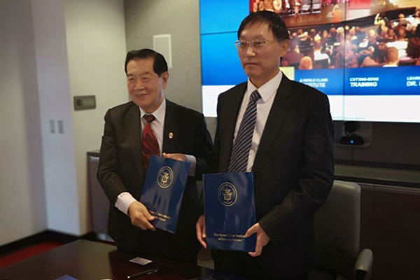 10月23日,代表团一行六人前往纽海文市访问。在纽海文大学,纽海文大学终身名誉教授、华裔鉴识专家、被誉为“当代福尔摩斯”的李昌钰博士热情接待了王成端教授一行,双方进行了卓有成效的商谈,对两校间的学术交流,教师访学等项目达成共识并签订了校际合作协议。访问期间,王成端书记邀请李昌钰博士来万象城交流并作学术讲座,李昌钰博士接受了邀请。