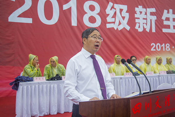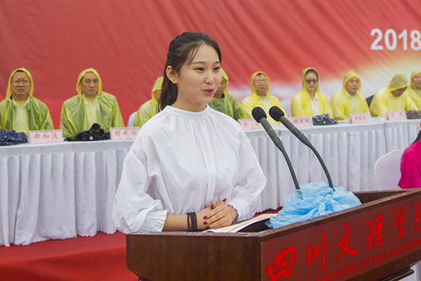 “诗人说,青春是一本太仓促的书,未来,我们会含着泪一读再读。我要说,未来的泪是幸福还是酸楚,全在我们今天面对青春的态度”,教授代表程碧英博士声情并茂地为新同学诠释青春的意义:“青春承载着使命与担当,新征程承载新使命,新担当期待新作为;青春召唤着理想与奋斗,奋斗和理想是青春的底色;青春追寻着爱与光芒,做一个眼中有光、心中有爱、脚下有路的新青年。”程教授鼓励同学们要在大学的青春时光中善读群书,勤于思考,躬身力行,“同学们,回首往事,你们仍然意气飞扬;展望前程,你们当是一代风华”“文理校园因有你们的加入而更具青春活力,梦想路上因有你们的汇流而更显缤纷色彩”“感谢有你,让我们在美丽的四川文理相遇;春风十里,不如青春有你!期待你们像习大大所勉励的那样:立鸿鹄志,做奋斗者,求真学问,练真本事,在实现梦想的征程中,牢记博文大理、厚德笃行的校训,实现‘三心四能五复合’的人生成长,不负青春,不负祖国!”
