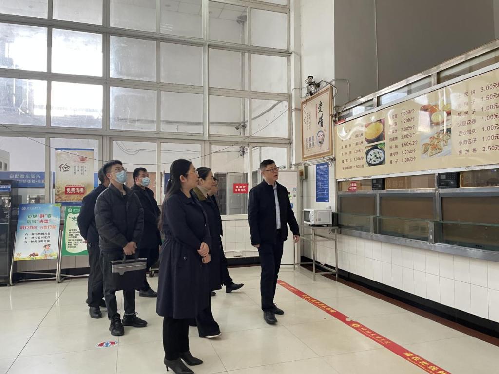 12月6日,四川省教育厅基建后产中心副主任蒋鹏飞、学校食品安全科干部冯孟,达州市教育局赵亮一行来万象城检查食品安全工作。副校长程碧英陪同检查。