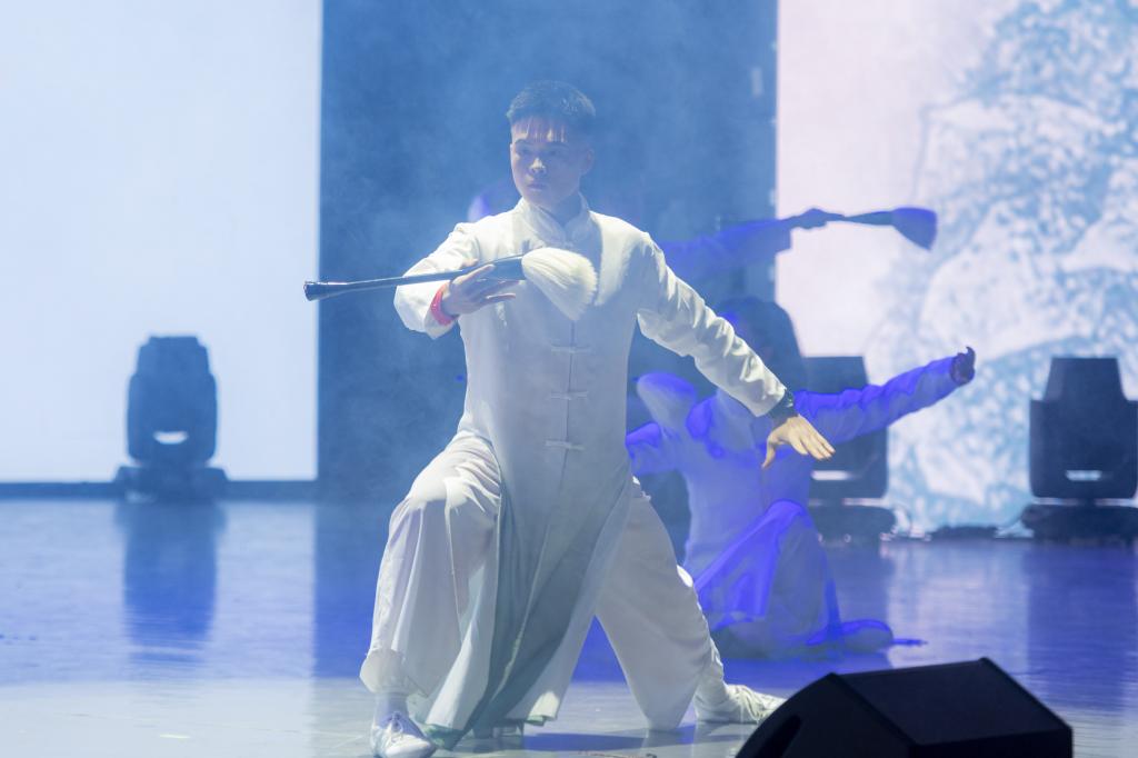 梦想是一盏灯,照亮我们前行的方向;梦想也是一对翅膀,给我们穿越风雨的力量。伴着掌声进入第二篇章“梦想”,演唱《篾丝飞舞》、武术舞蹈《武舞同行》、舞蹈《丰收铰响》分别演绎了竹乐器和民歌交织交融,书法与武术的相辅相成以及舞蹈与民族艺术的融合创新,充满力量感及艺术感的动作令台下观众目不暇接。