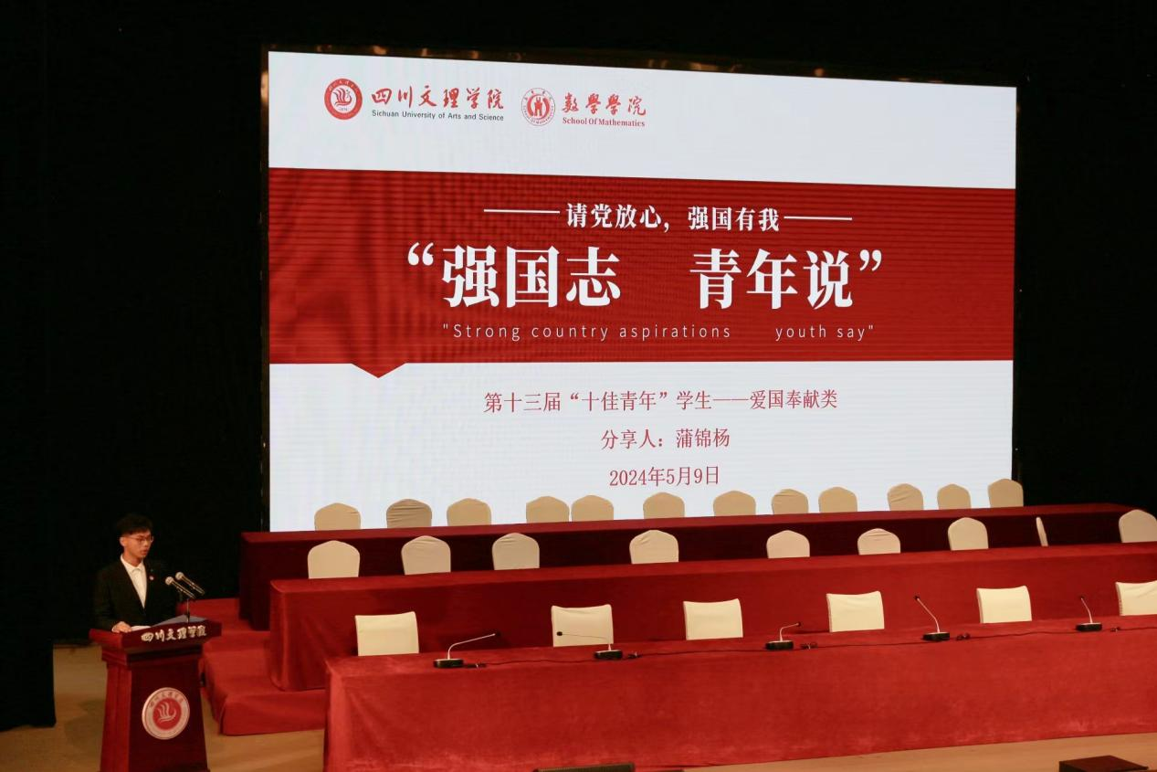 表彰大会结束后,学校举行“强国志 青年说”青春故事分享会,牛湘云、陈俊屹、熊滔涛、费思凯、蒲锦扬等5名“十佳青年学生”代表结合自身经历,讲述青春奋斗故事,分享学习、成长的经历与收获,展示文理青年奋进风采,激励广大青年学生接续奋斗、逐梦前行,让青春在实现中华民族伟大复兴的中国梦中绽放异彩。