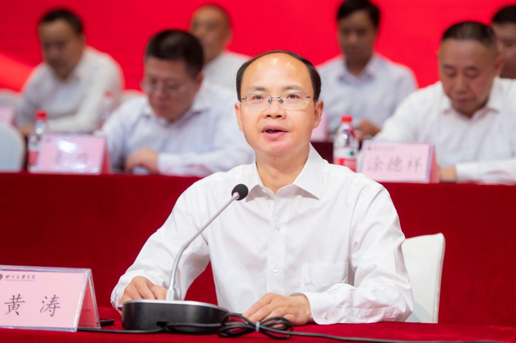 黄涛向加入共青团组织的新团员、获奖的集体和个人表示热烈的祝贺,向全校广大教育工作者和青年工作者致以崇高的敬意,向全校青年师生致以亲切的问候。他指出,在过去的一年里,学校共青团坚持党的领导,发扬“党有号召,团有行动”的优良传统,紧紧围绕学校中心工作,紧扣“为党育人,为国育才”这一主线,狠抓“领航、成才、发展、革新、强基”五大青春行动,深化实施“青年马克思主义者培养工程”,全面推进“青年大学习”和“网上共青团”建设,开展团员和青年主题教育,组织青年学生参加成都大运会专场演出,在思想教育、组织建设、社会实践、志愿服务、文化活动等方面,做了大量积极有益的工作,为青年学生的成长成才、为学校的建设发展做出了积极贡献。希望全校各级团组织要倍加珍惜荣誉,继续发扬成绩、再接再厉,进一步明确奋斗方向,努力书写出无愧于时代的精彩华章。